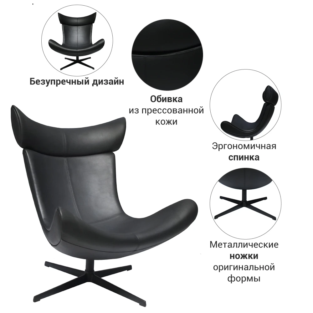 Высокая изогнутая спинка и приподнятое вверх сиденье словно приглашают вас присесть и самостоятельно оценить непревзойденный комфорт кресла Toro.