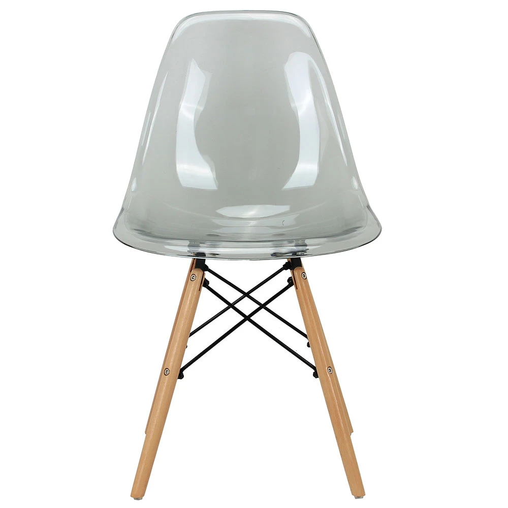 Сиденье выполнено из прозрачного поликарбоната, ножки и опоры из массива бука и металла.