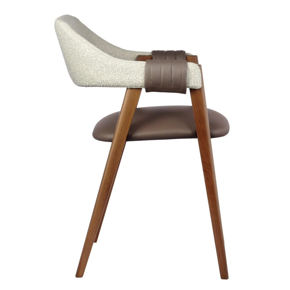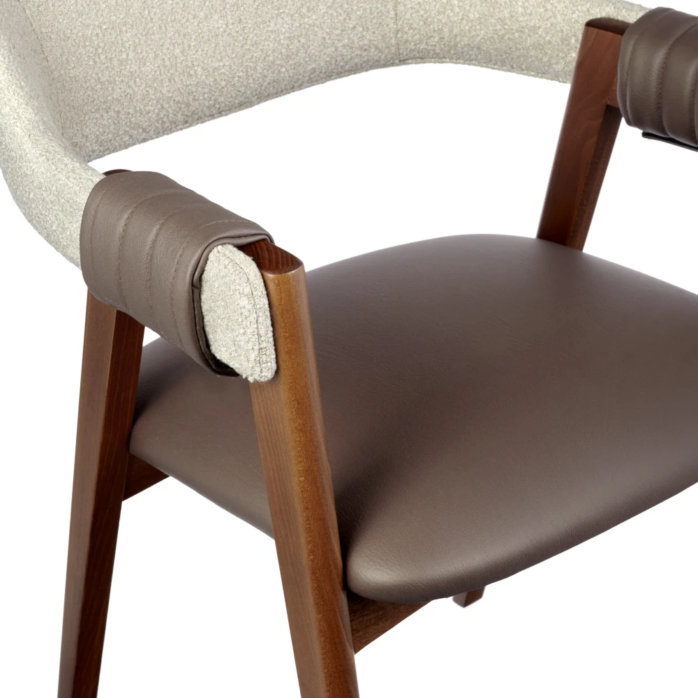 Стул KELLI - это элегантное изделие с изогнутой спинкой и массивными ножками из бука. Подлокотники обтянуты экокожей, добавляя роскошь и комфорт. Изысканный дизайн, сочетающий в себе изящество форм и высококачественные материалы, делает этот стул не только удобным, но и стильным акцентом в интерьере.