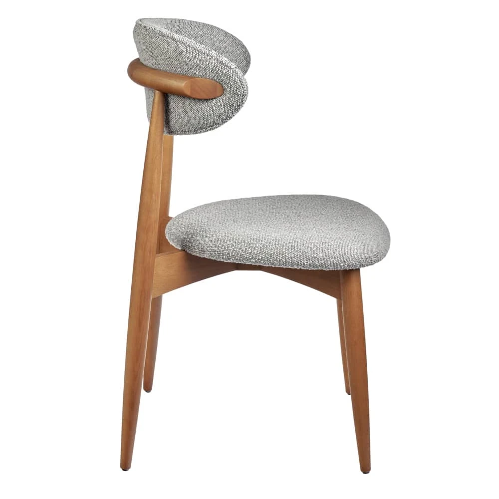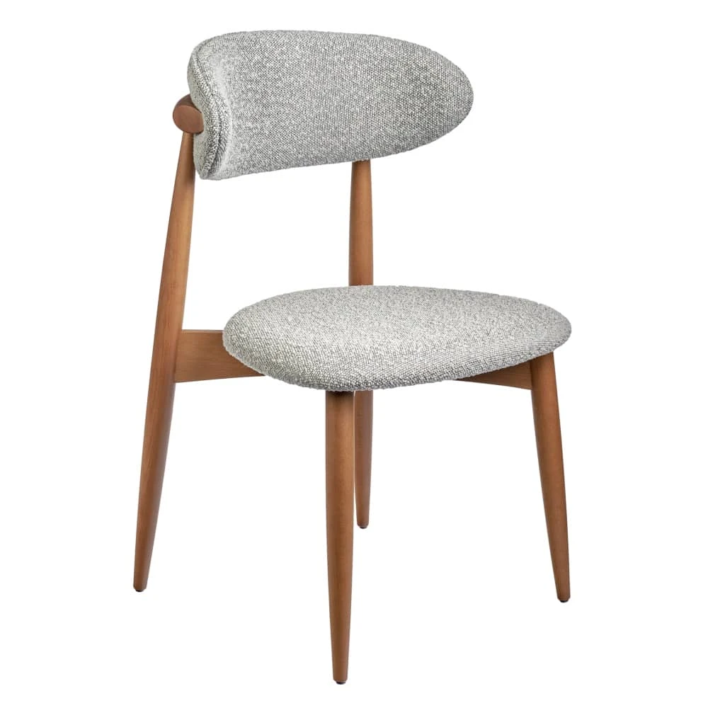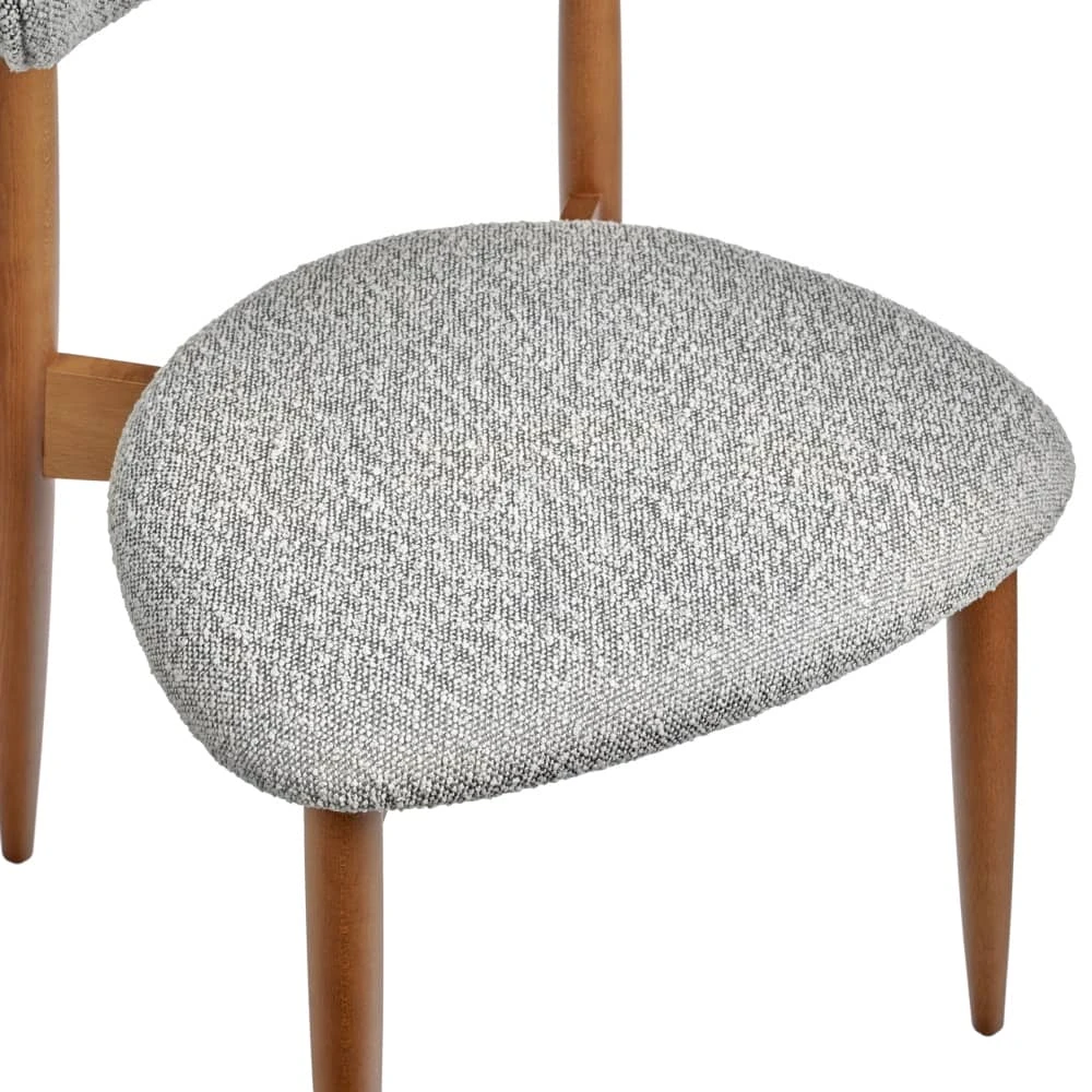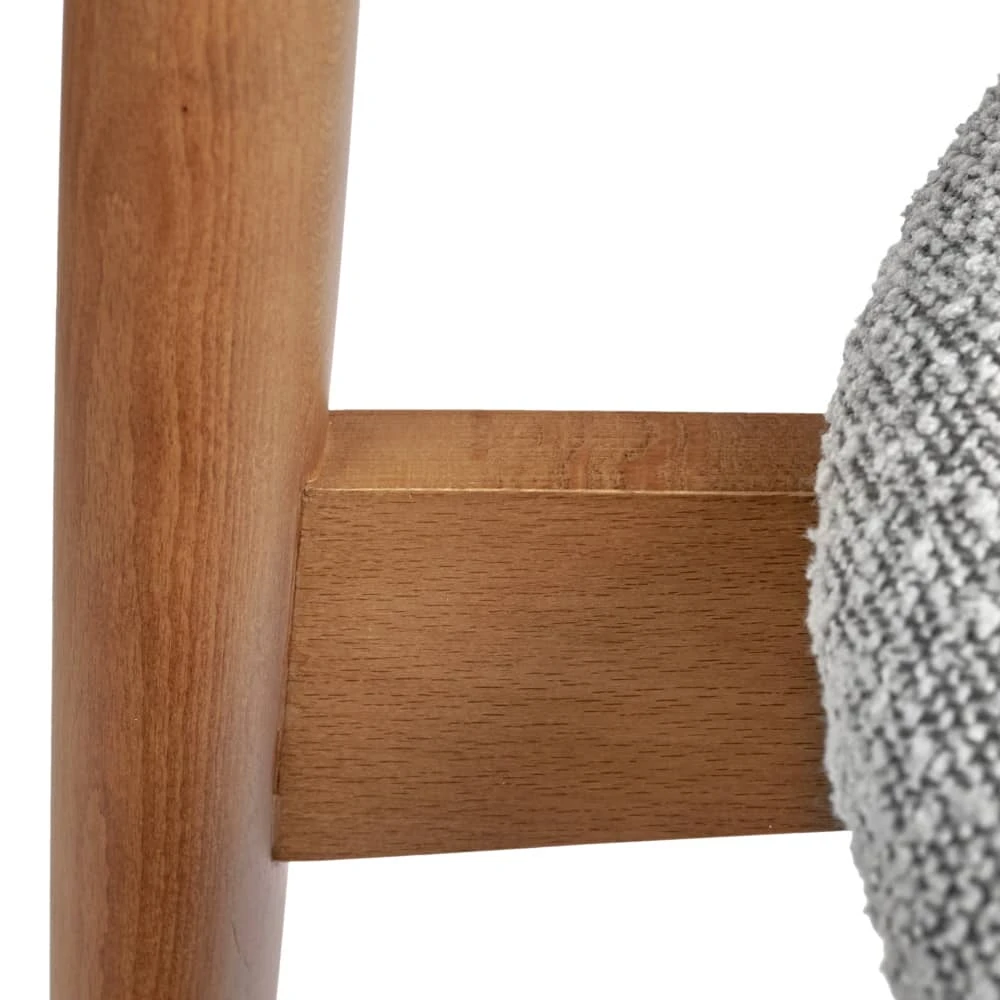 Сиденье и спинка изготовлены из высокоустойчивой ткани букле в светло-сером оттенке. Мягкие спинка и сидение обеспечивают максимальный комфорт. Оригинальный каркас из массива натурального дерева в цвете орех добавляет стулу элегантность. Стулья из бука отличаются прочностью и надежностью.