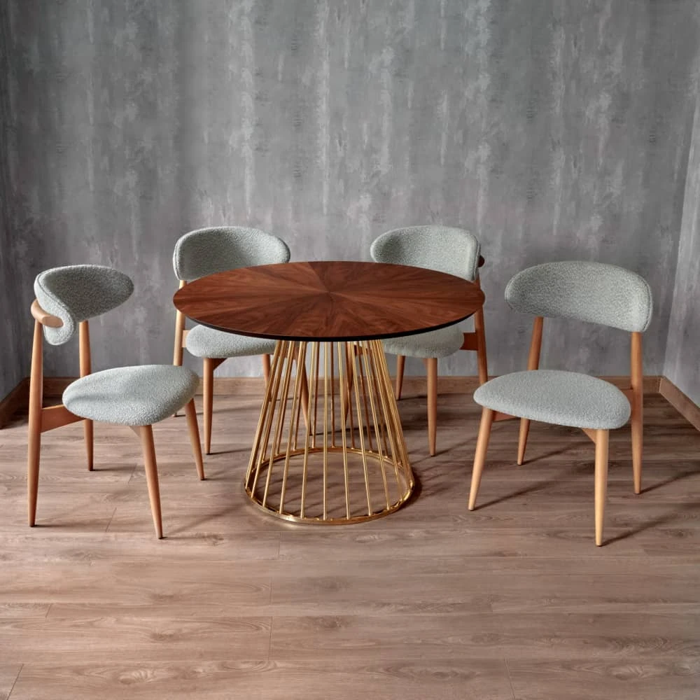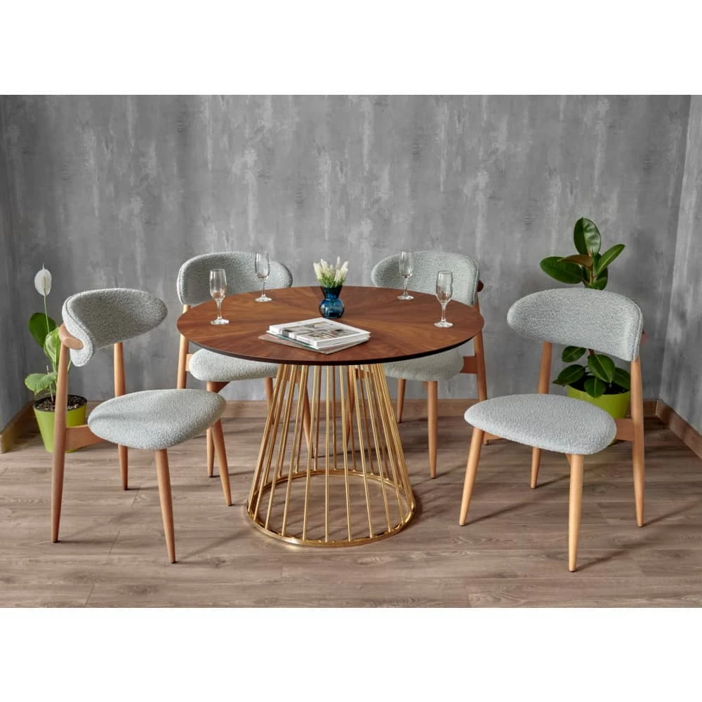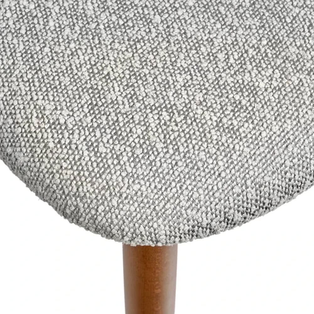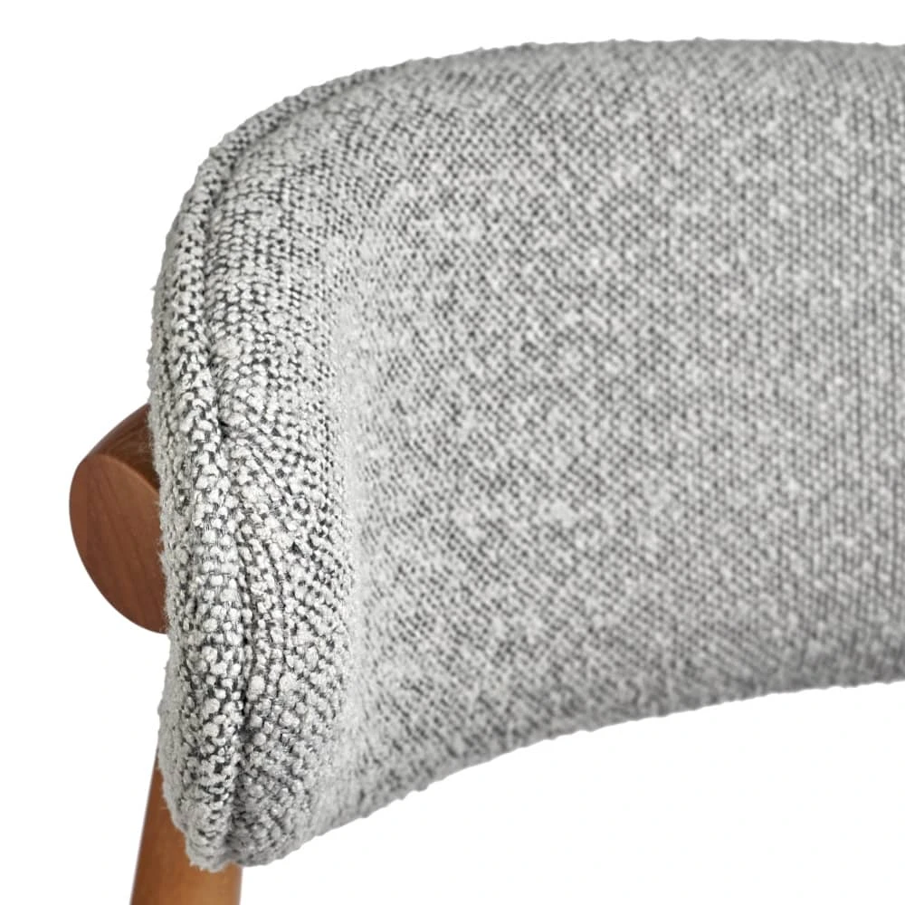 Сиденье и спинка изготовлены из высокоустойчивой ткани букле в светло-сером оттенке. Мягкие спинка и сидение обеспечивают максимальный комфорт. Оригинальный каркас из массива натурального дерева в цвете орех добавляет стулу элегантность. Стулья из бука отличаются прочностью и надежностью.