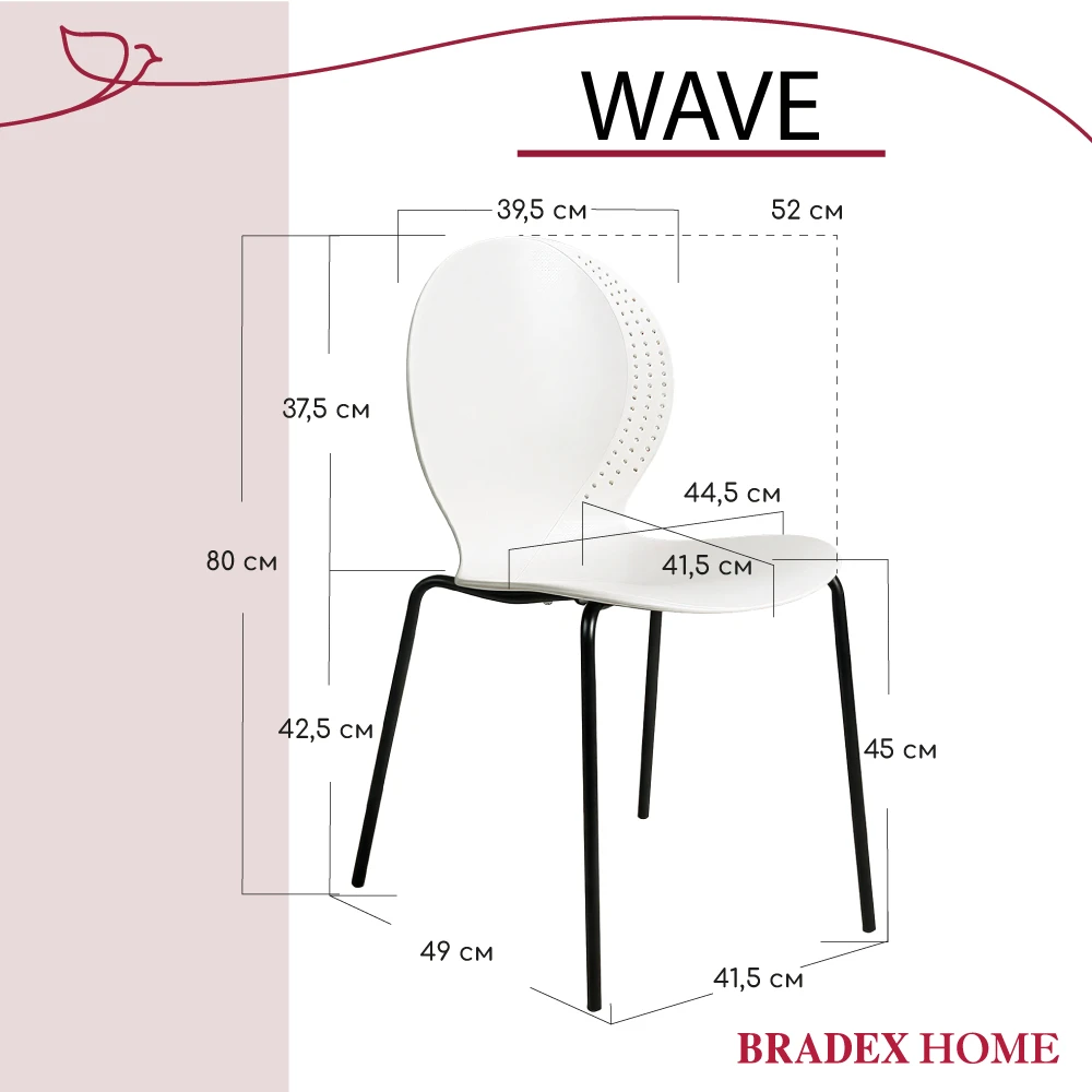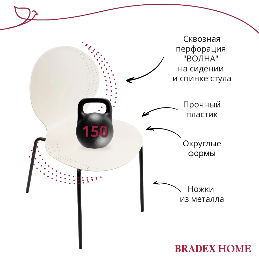 Стул элегантного дизайна, подчеркивающий сочетание современных материалов и утонченного стиля. Его металлические ножки придают конструкции прочность и устойчивость, обеспечивая надежность даже при интенсивном использовании. Цельнолитое пластиковое сиденье с плавными формами, создаёт комфортное пространство для посадки. Особенностью изделия является изящная перфорация по краям спинки и сиденья, придающая легкости общему облику и привлекающая внимание своей необычной декоративностью. Этот стул станет прекрасным дополнением интерьера, сочетающего минимализм и современность, гармонично вписываясь в любую обстановку и подчеркивая вкус владельца.
