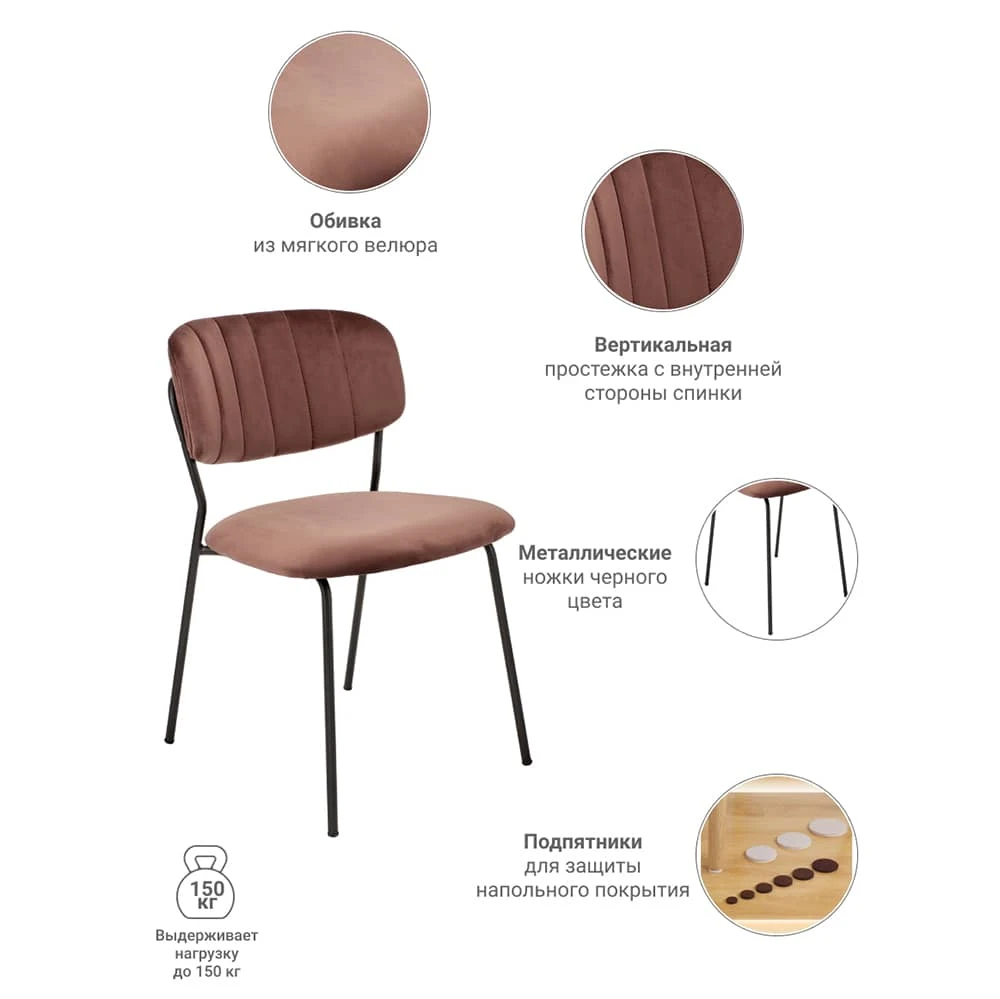 Стул Carol с мягкой спинкой и удобным сиденьем украсит любое помещение, будь то столовая, офисная переговорная, кабинет или холл. Силуэт стула минималистичен: строгие ножки черного цвета из стали, спокойная обивка из высококачественного велюра, классическая скругленная форма спинки для лучшей поддержки и правильной осанки. Сдержанный, лаконичный дизайн стула отлично впишется в современный интерьер практически любого пространства и задаст правильное настроение. Благодаря удобной посадке стул Carol - это прекрасное решение для кафе, зоны ожидания на ресепшн и в фойе бизнес-центров. В комплект входит инструкция и аксессуары для сборки.