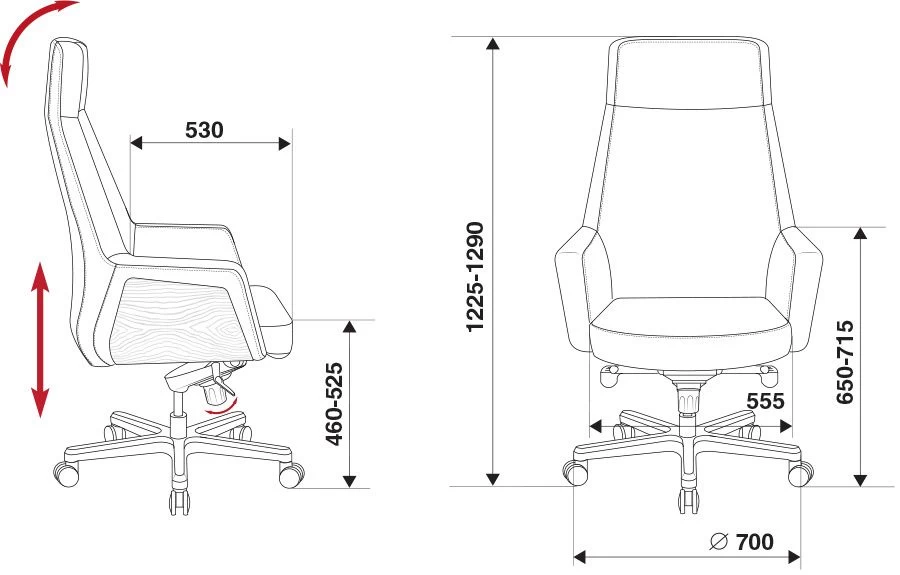 натуральная кожа (лицевая часть, подлокотники) / искусственная кожа