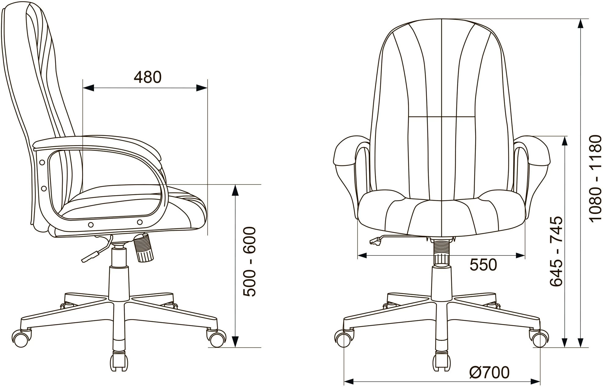 Подлокотники пластиковые с мягкими накладками.