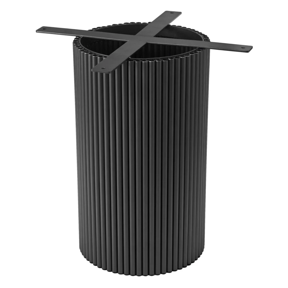 Элегантная круглая опора: металлическая основа черного цвета придает столу стабильность и стильный современный вид, идеально гармонируя с мраморной столешницей.