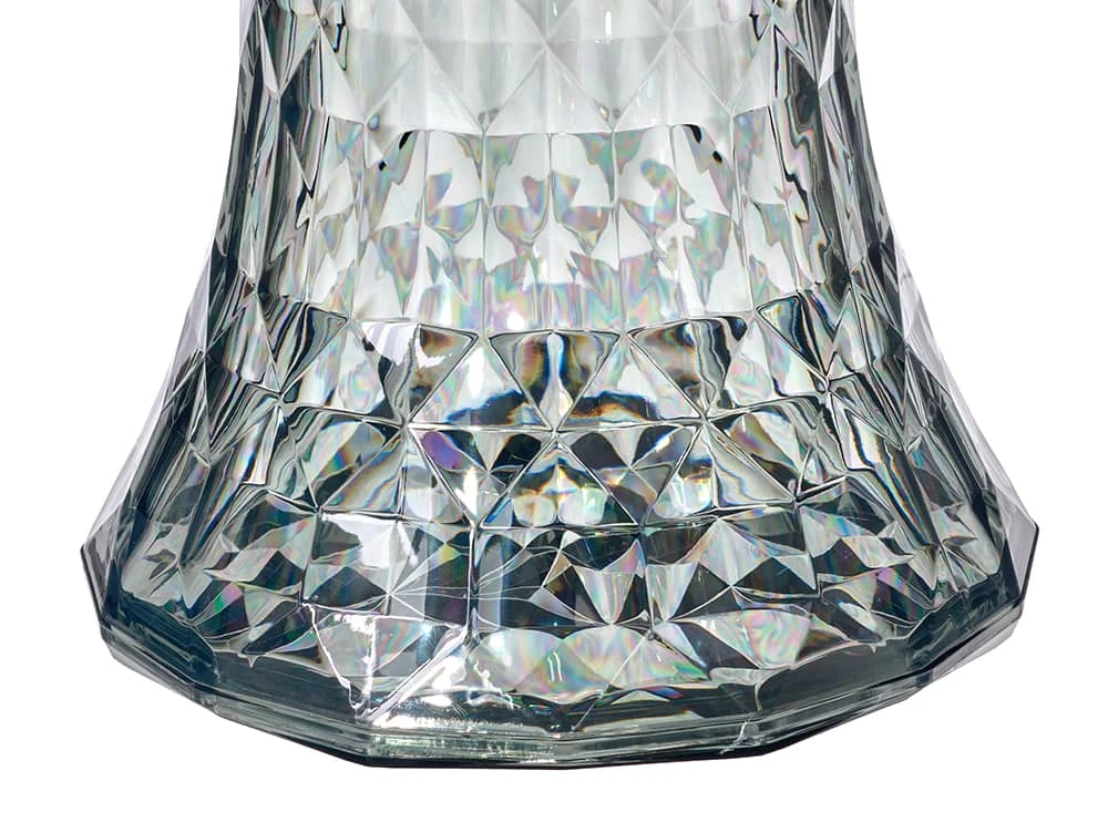 Простая и симметричная форма напоминающая песочные часы, а поверхность состоящая из множества граней, отражающих свет, необычна и оригинальна. Уникальность изделия - это высокая функциональность, позволяющая использовать его в абсолютно любых жилых и общественных пространствах.