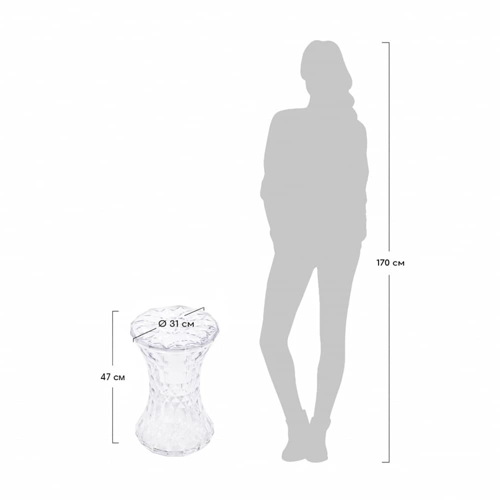 Стул-пуф изготовлен из прозрачного поликарбоната. Благодаря большой цветовой гамме этот стул подчеркнет индивидуальный стиль любого интерьера. Материал: поликарбонат. Температурный режим: -5 +40 градусов Цельсия, избегать дождя и прямых солнечных лучей. Размеры, см: Ш31хГ31хВ46см Вес: 3кг Максимальная нагрузка: 120 кг. Поставляется в собранном виде.Наша бонусная система – это прекрасная возможность отблагодарить Вас за то, что Вы выбрали компанию КупиКресла!