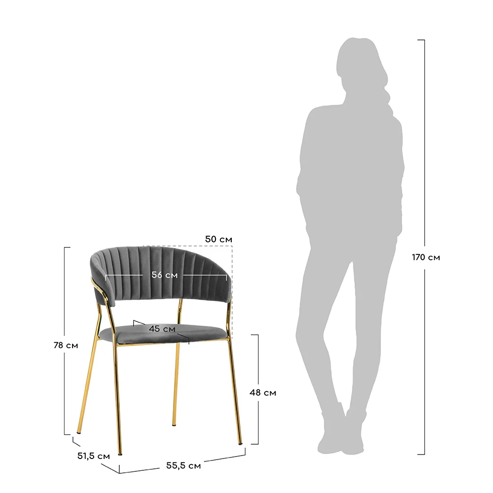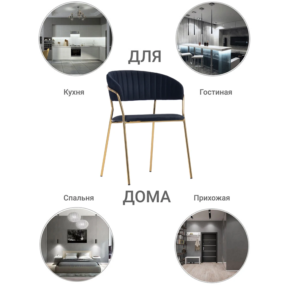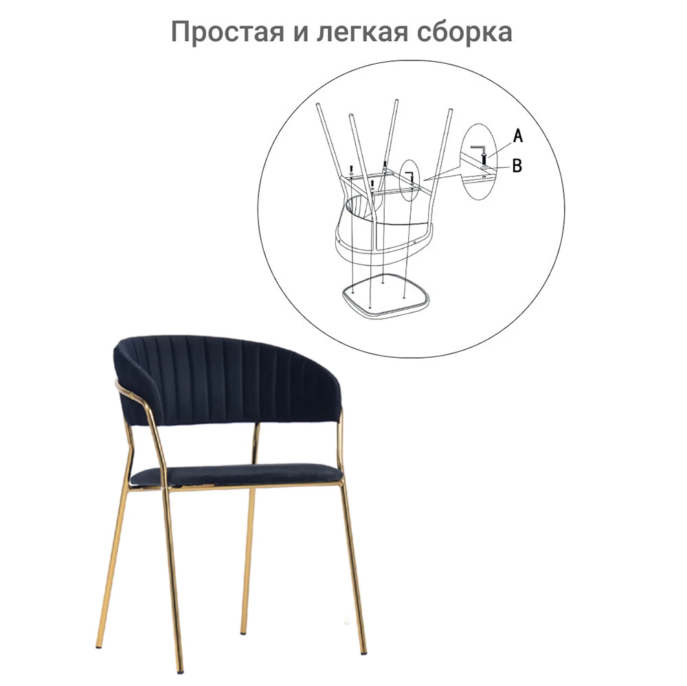 Элегантные золотые ножки из прочного металла создают эффектный контраст с сиденьем. Они придают конструкции визуальную легкость и повышенную устойчивость.