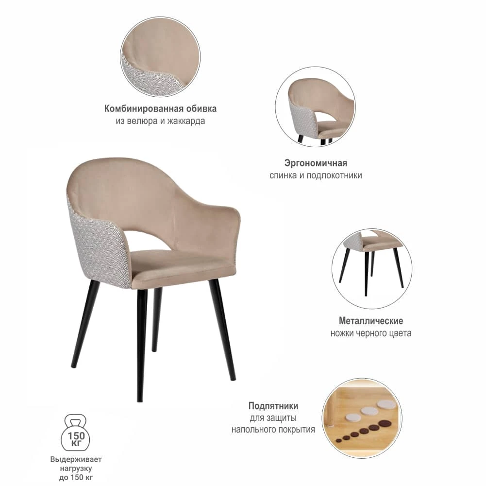 Стул на удобном металлическом сварном каркасе. Обивка с комбинацией жаккарда и износостойкого мебельного велюра устойчива к истиранию. Размер: 57x61x78см Ширина сиденья: 46,5 см. Глубина сиденья: 44,5 см. Вес стула 7,3 кг. Максимальная нагрузка 120 кг. Поставляется в разобранном виде.Наша бонусная система – это прекрасная возможность отблагодарить Вас за то, что Вы выбрали компанию КупиКресла!